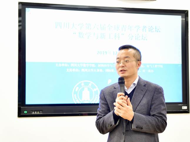 2019年12月14日上午九点半,四川大学第六届全球青年学者论坛——“数学与新工科”分论坛在基础教学楼成功举办。本次论坛以“数学与新工科”为主题,涵盖数学、材料、机械、电气等学科,旨在为一流人才创建一流学科交叉平台。四川大学人事处处长兼数学学院党委书记胡兵、青年人才工作科科长张愉,数学学院党委副书记覃孟念,材料科学与工程学院党委书记尹光福、党委副书记张晓满、副院长吴家刚、副院长林江莉、工会主席武莉莉,机械工程学院党委书记惠新强、院长王杰、副院长刘剑,yl23455永利官网党委书记韩芳、院长肖先勇,以及来自各学科的18名青年学者参加了分论坛大会,会议由韩芳主持。