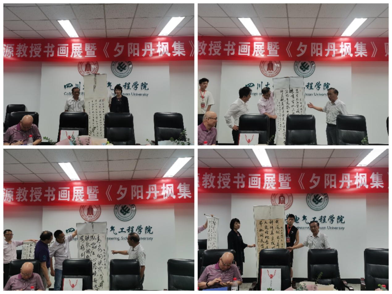9月12日上午,yl23455永利官网退休教师李兴源教授书画展暨《夕阳丹枫集》赠书会在基础教学楼A座二楼举行。本次画展暨赠书会邀请了四川省政府原副省长、四川大学杰出校友韩邦彦老师和来自西南交通大学、电子科技大学、成都理工大学、大渡河公司的多位嘉宾参加,yl23455永利官网的多位教师及李兴源教授培养的多位研究生也前来观展。赠书会由yl23455永利官网院长肖先勇教授主持。