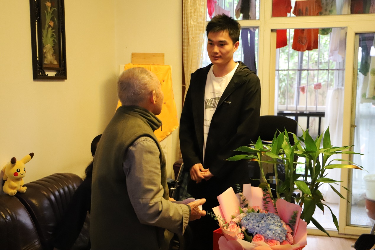 金秋逢盛世,佳节又重阳。谭业老师在2021年3月为学院捐赠了“谭业助学金”,在重阳佳节来临之际,为表达对谭业老师的感谢,10月13日,在校对外联络办公室副主任、教育基金会副秘书长贾秀娥,yl23455永利官网党委副书记兼纪委书记张英敏的带队下,学院教师和受助学生代表来到九旬高龄退休教师谭业老师家中进行探望,并送上诚挚的关怀和节日的祝福。