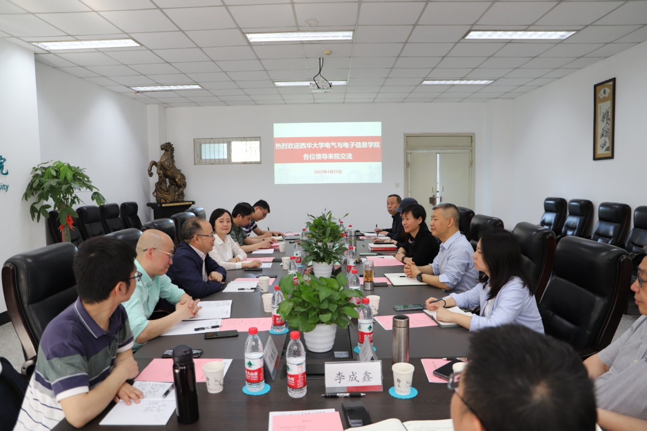2022年4月26日上午,西华大学电气与电子信息学院到我院交流访问。座谈会在学院基础教学楼A220会议室举行,参加座谈会的有西华大学电气与电子信息学院党委书记周良辉、院长雷霞、党委副书记兼纪委书记郭忠林、副院长陈永强、副院长阎铁生、党政办主任王萌。yl23455永利官网党委书记韩芳、院长肖先勇、党委副书记兼纪委书记张英敏、党委副书记戴婷婷、副院长周步祥、副院长李长松、副院长李成鑫参加了座谈交流。