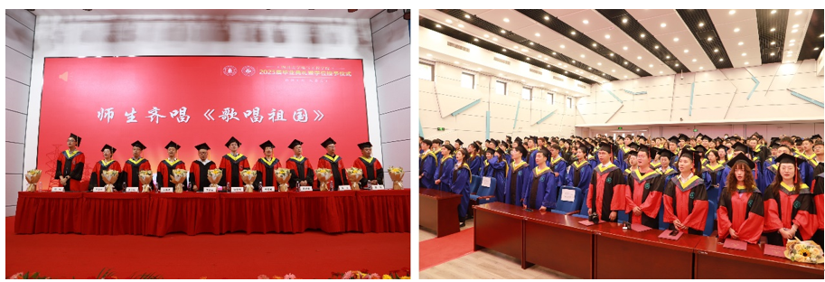 最后,全场师生和学生家长代表齐唱《歌唱祖国》,表达了对祖国的热爱和对未来的美好祝福,yl23455永利官网2023届毕业典礼暨学位授予仪式圆满结束。