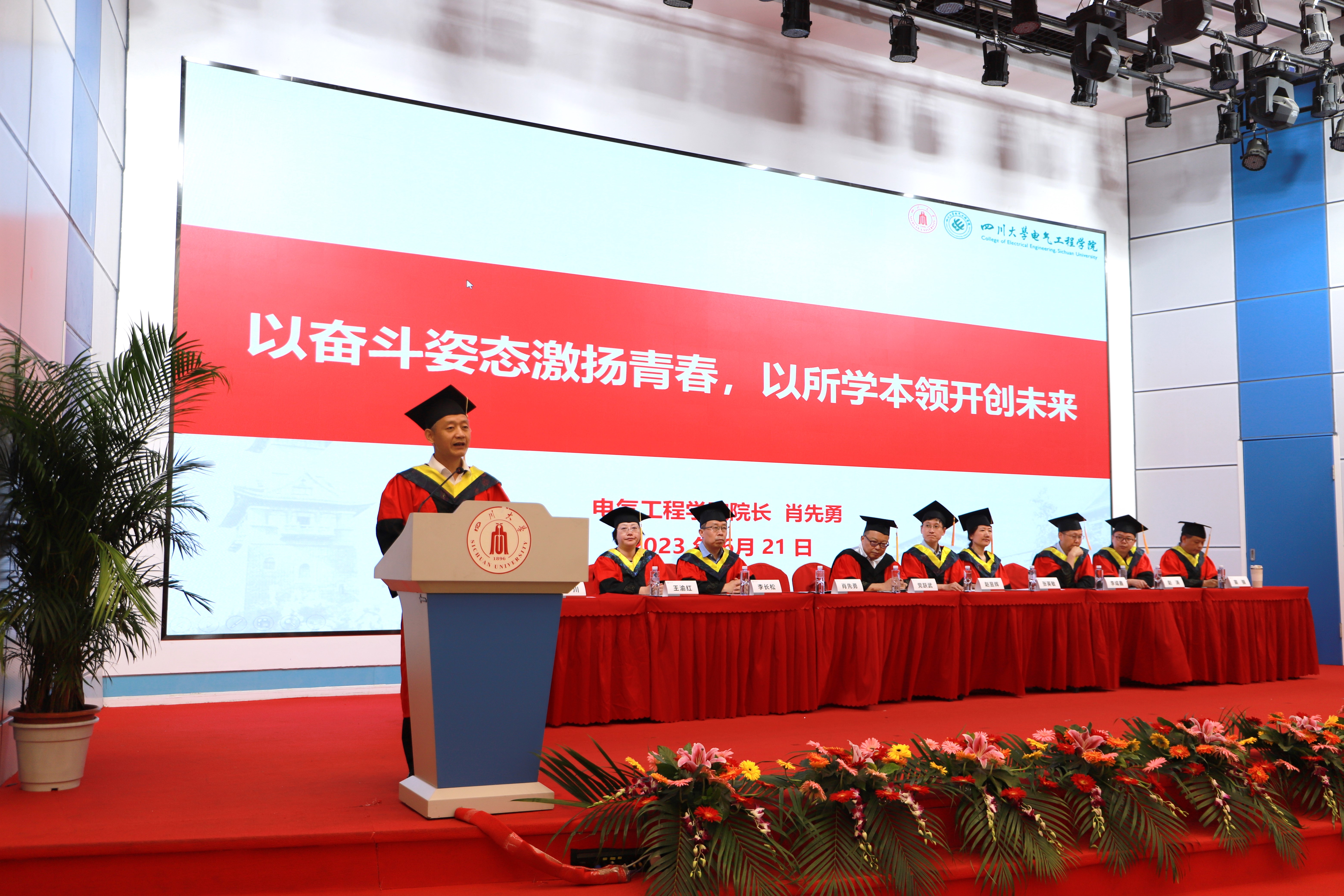 6月21日下午,yl23455永利官网2023届毕业典礼暨学位授予仪式在望江校区汇文楼演播厅隆重举行。四川大学教务处处长党跃武,yl23455永利官网党委书记赵昱辉、院长肖先勇,副书记张英敏、戴婷婷,副院长李长松、李成鑫,我院主任王渝红、博导代表何川,自动化系主任赵涛、博导代表苗强,以及2023届毕业生和学生家长代表参加了毕业典礼。典礼由戴婷婷副书记主持。