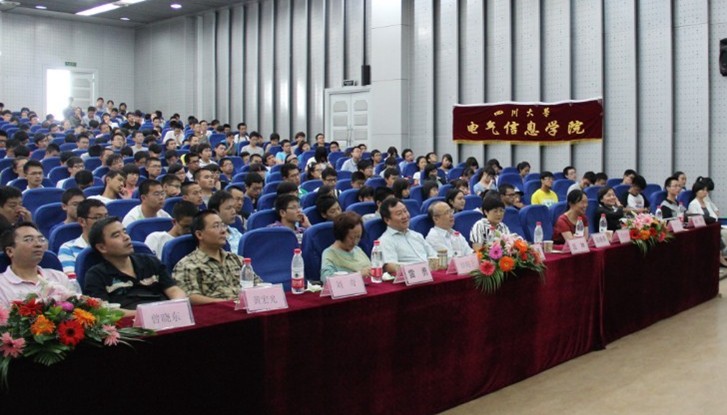 开学典礼在音乐声中开始,四川大学电气信息学院院长刘俊勇教授首先向12级新生的到来表示衷心的祝贺,幽默地谈及了当代大学生对大学应具有的认识,提出大学是一种重要的体验,是思考人生,培养能力的重要时期。刘俊勇院长多次引用谢和平校长的话,“你可以不伟大,但你一定要有崇高的目标。”告诫我们面临挫折和坎坷时,要坚持自己的梦想,不断拼搏,不断奉献。此外,刘院长简要介绍了学校及学院的概况,并向同学们讲述了优秀校友们的辉煌成绩和成长经历,以此勉励同学们珍惜在川大的美好时光,继承电气信息学院的优良传统,努力学习,奋勇拼搏,将来为电气、为川大、为我们的祖国赢得更大的荣耀。