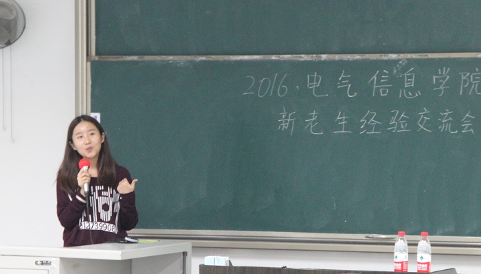 2016年9月24日晚7时,电气信息学院2016年度新老生学习经验交流会在江安校区第二基础教学楼报告厅成功举行。电气信息学院2013级舒心学姐,2014级学生会主席张康宁学长,贺帅佳学长,2015级代撬楚学长出席本次交流会。电气信息学院电气工程及其自动化、自动化、通信工程2016级新生到场参加交流会。