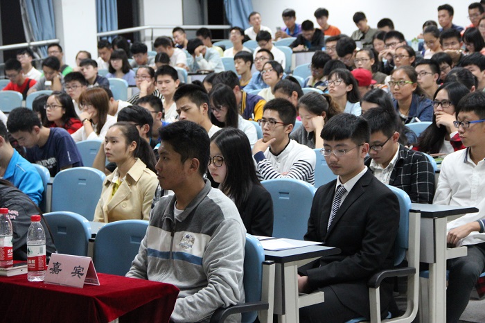 首先,电气信息学院团委学生会主席张康宁学长发言。他从“学生会是什么”、“学生会的目标”、“如何做学生工作”、“做学生工作应该具有的品质”四方面与同学们展开交谈。他结合自身经验指出院学生会正朝着引领学生思想潮流的方向发展,每位成员都应当准确定位好自己,坚持不懈,充满自信地做好每一件事,做一名有担当的干事。