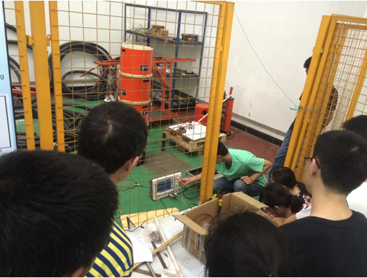 同学们非常积极,还没到规定的时间就已经聚集在实验室门口,待实验室各项工作准备完毕后,活动正式开始。首先,周凯老师带领同学们参观了实验室,参观过程中周老师对实验室内正在研发的项目进行了针对性的演示和讲解。周老师说实验室开放日半个月前就开始筹备,希望通过这样的形式让同学们了解高电压实验室正在进行的前沿探索,对高电压学科知识产生兴趣,并树立刻苦专研的学习风气,推动学风建设。随后,周老师介绍了自己在摸索中建设和发展实验室的过程,自 2009年到四川大学电气信息学院任教,至今已有六个年头,刚到学校时,实验设备较为缺乏,实验室从百废待兴到现在的蓬勃发展,目前已获得许多项目和资金的支持,并且已经发表了许多具有影响力的文章,自身和实验室的科研水平都得到了较大程度的提升,随着实验室不断的壮大,也希望能够将实验室建设得更好。