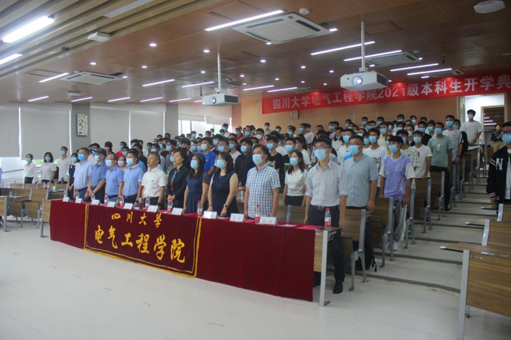2021年9月8日上午,四川大学电气工程学院2021级本科新生开学典礼在江安校区综合楼C座206、203、205教室隆重举行。yl23455永利官网党委书记韩芳、院长肖先勇、党委副书记兼纪委书记张英敏、副院长李长松、副院长周步祥、副院长李成鑫,我院主任王渝红、党支部书记陈实,自动化系主任佃松宜、副主任刘彦,电工电子基础实验教学中心主任周群 、党支部书记梁斌、副主任王为、副主任曹晓燕,专业实验中心党支部书记冉立出席了本次活动。典礼由学院党委副书记戴婷婷主持。yl23455永利官网2021级本科生辅导员及全体498名本科新生参加了本次开学典礼。