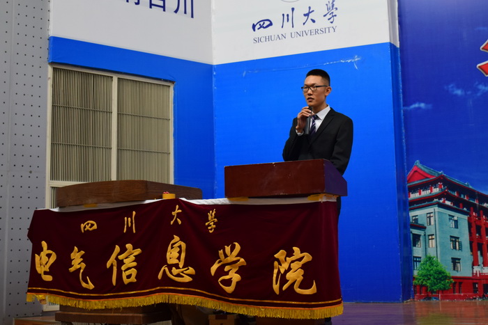 郎喜文副主席向新生着重介绍了电气信息学院的特色。作为一所典型的工科学院,电气信息学院历史较为悠久,科研能力优异,拥有一个智能电网四川省重点实验室,拥有两个四川省高校重点实验室,建有省级电气信息科学与工程本科人才培养基地、校级工科电工电子基础课教学基地。学院现有2个工学博士学位授权点,9个工学硕士学位授权点,2个工程硕士授权点。与包括英国、德国、美国、香港在内的国内外许多著名的高等学府、研究机构以及大中型企业建立了长期的友好合作关系。此外,学院学术性社团建设成果喜人,“医信创新社”、“乐电社”等社团在各类与学科涉及范围相关的竞赛中取得了优异的成绩。