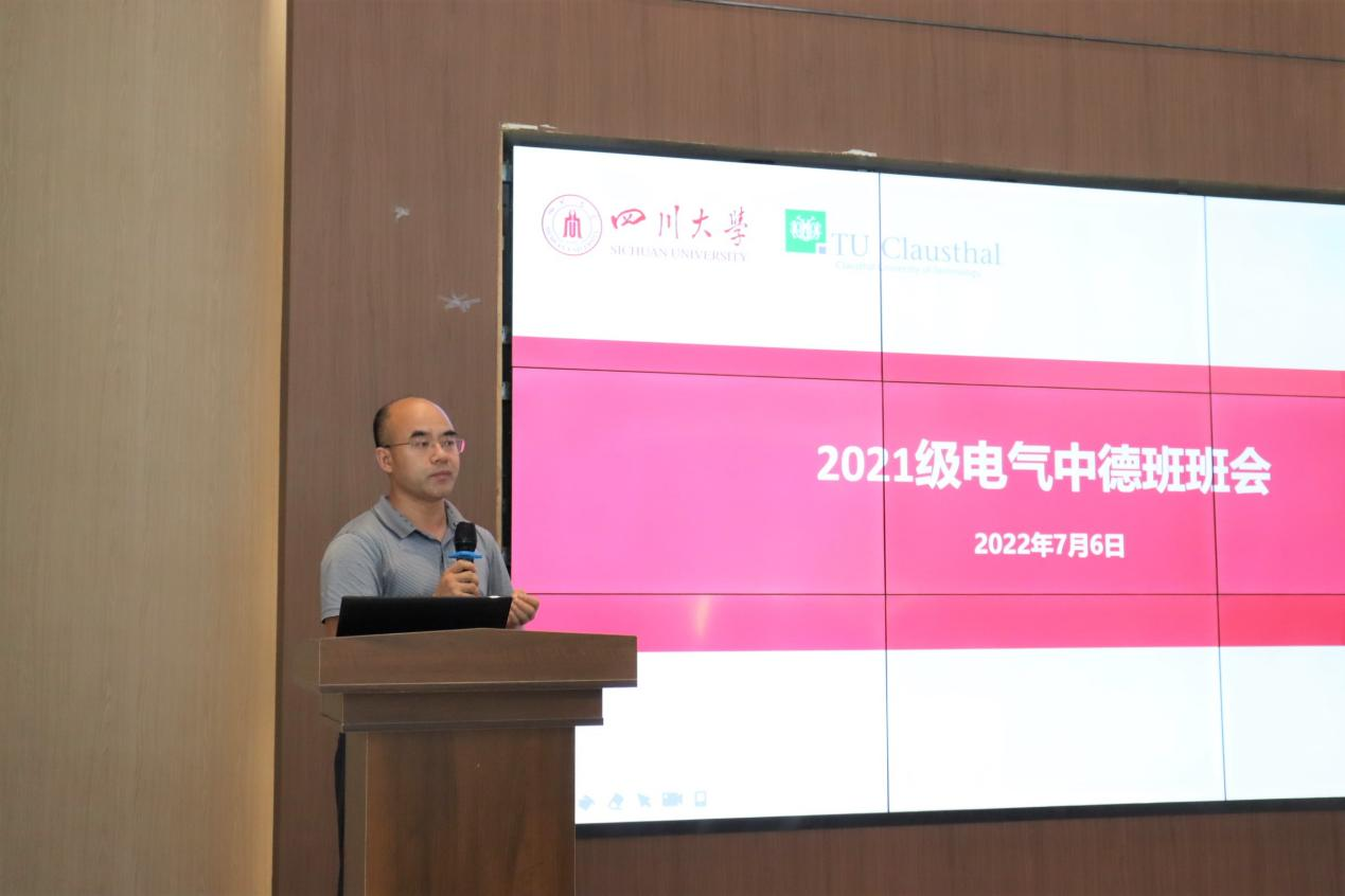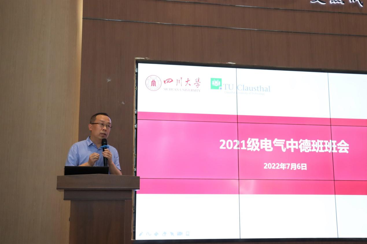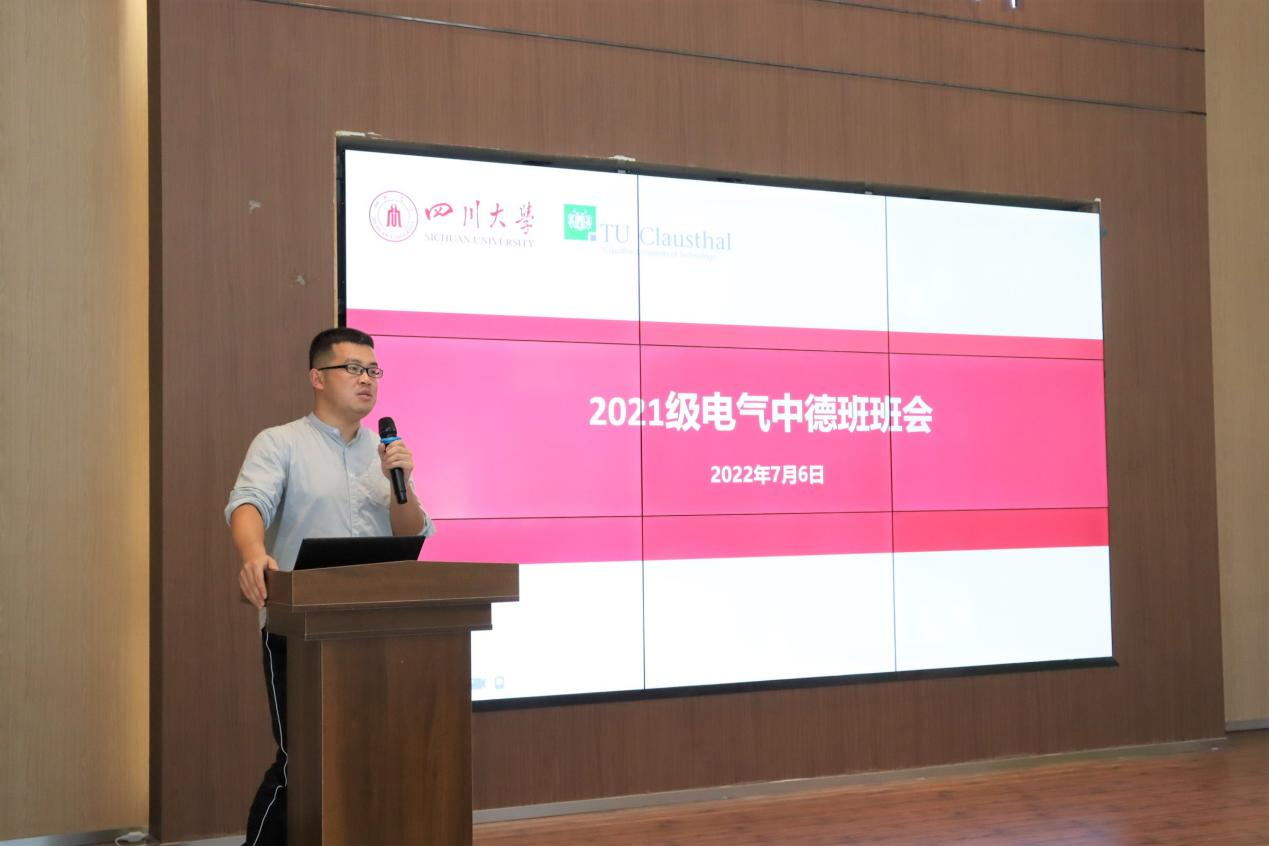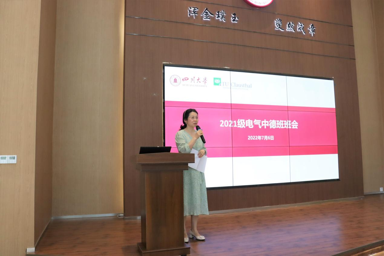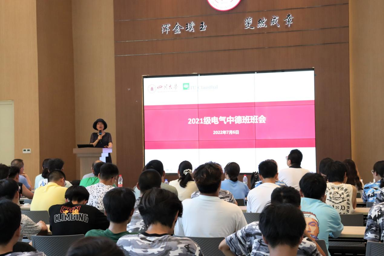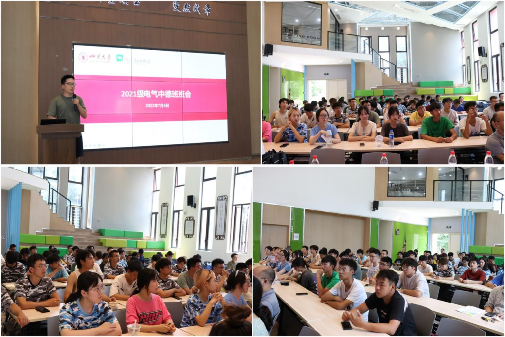 2022年7月6日下午,yl23455永利官网2021级中德班2022春季学期期末主题班会在江安校区玉章书院大礼堂顺利举办。yl23455永利官网党委副书记兼纪委书记张英敏、副院长李长松、院长助理陈实、我院党支部副书记刘亚梅、我院副主任钟俊以及中德合作办学项目行政管理及辅导员老师于孜清、朱愉田、张灿、严方舟、杨振尧共同参加了本次班会。本次班会由中德合作办学项目辅导员朱愉田主持。