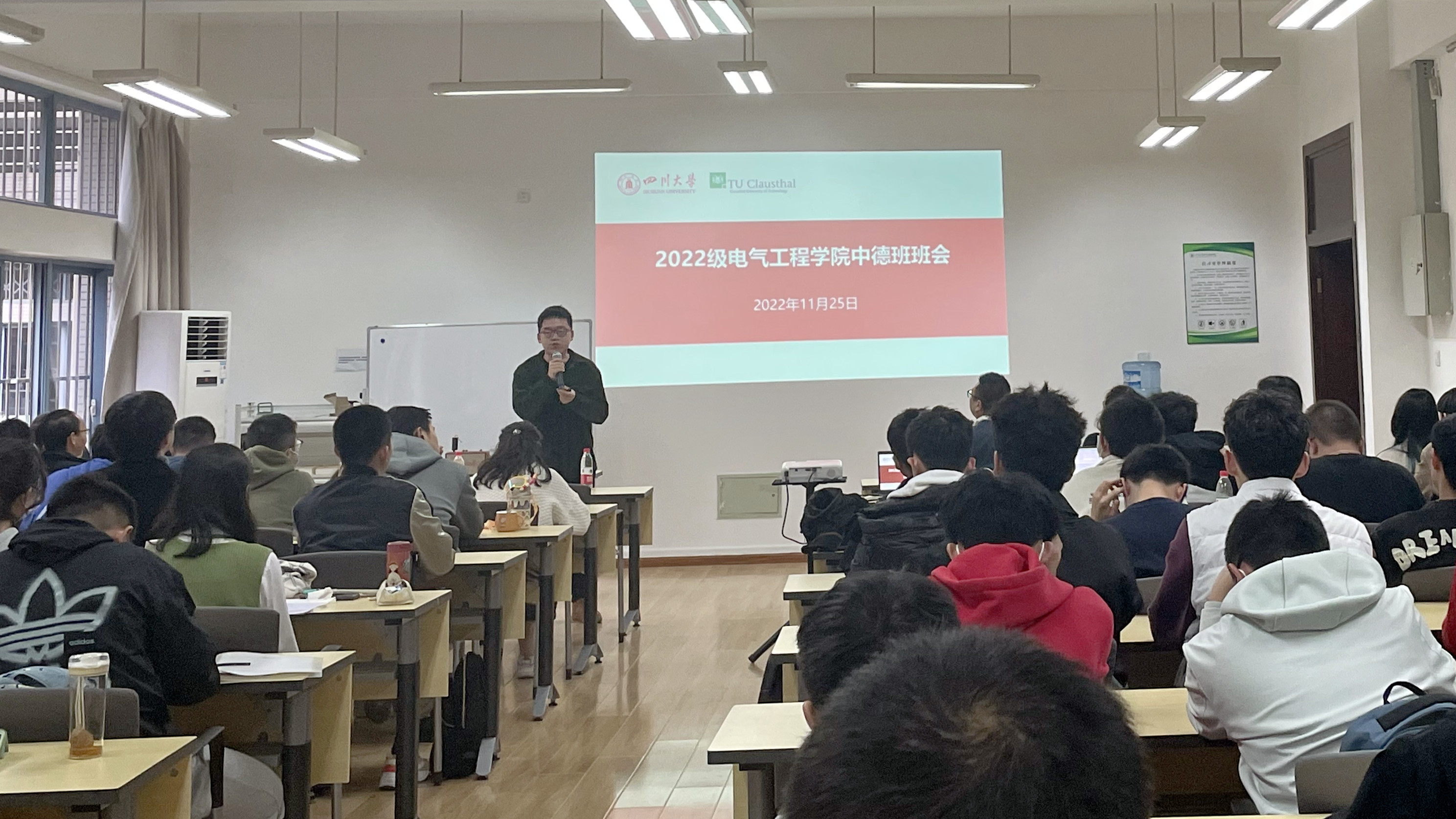 2022年11月25日下午,我院2022级中德班师生见面会在江安校区二基楼B103教室顺利举行。yl23455永利官网院长助理陈实,2022级中德班班主任黄勇、魏震波,中德项目辅导员及行政管理老师于孜清、朱愉田、张灿及2022级中德班全体学生参加了本次活动。本次见面会由朱愉田主持。