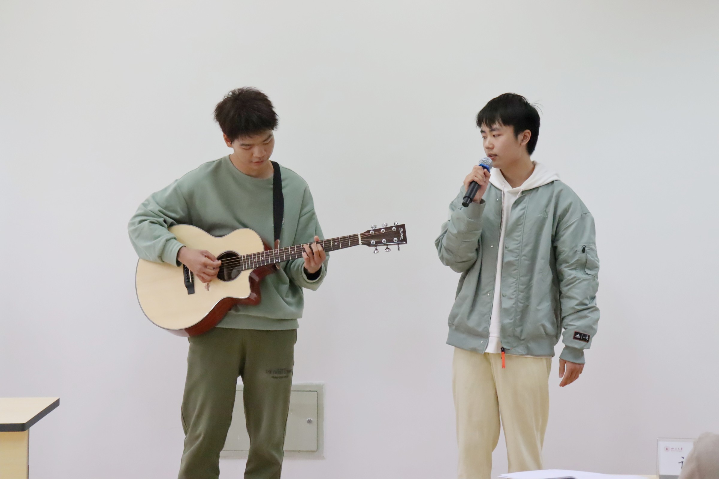 赛程过半,邱思诚、李昊耘同学为大家带来了吉他弹唱,琴声悠扬、歌声唯美。