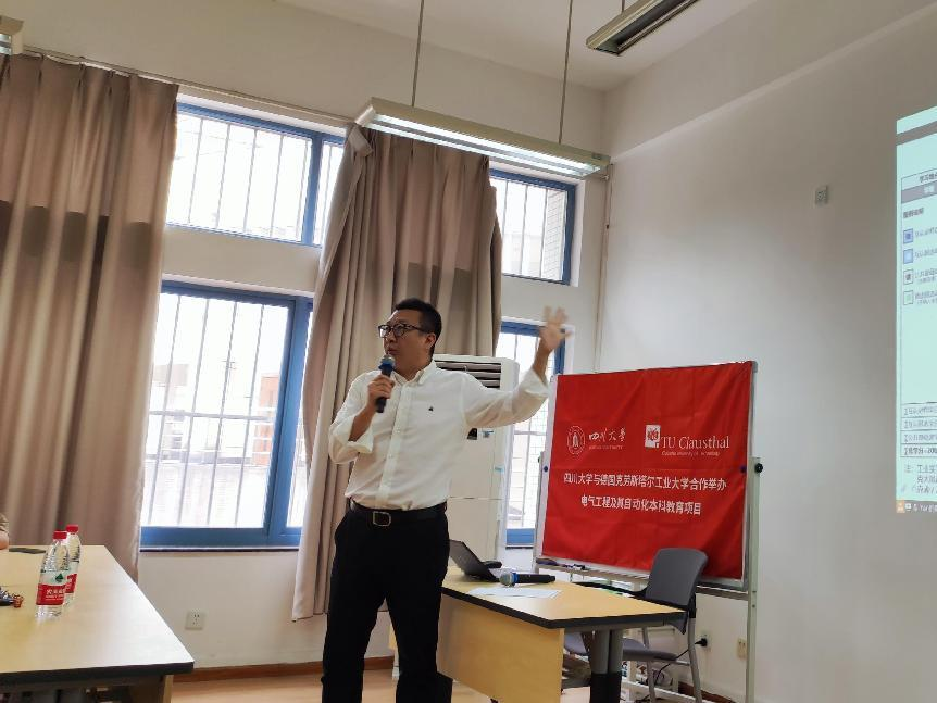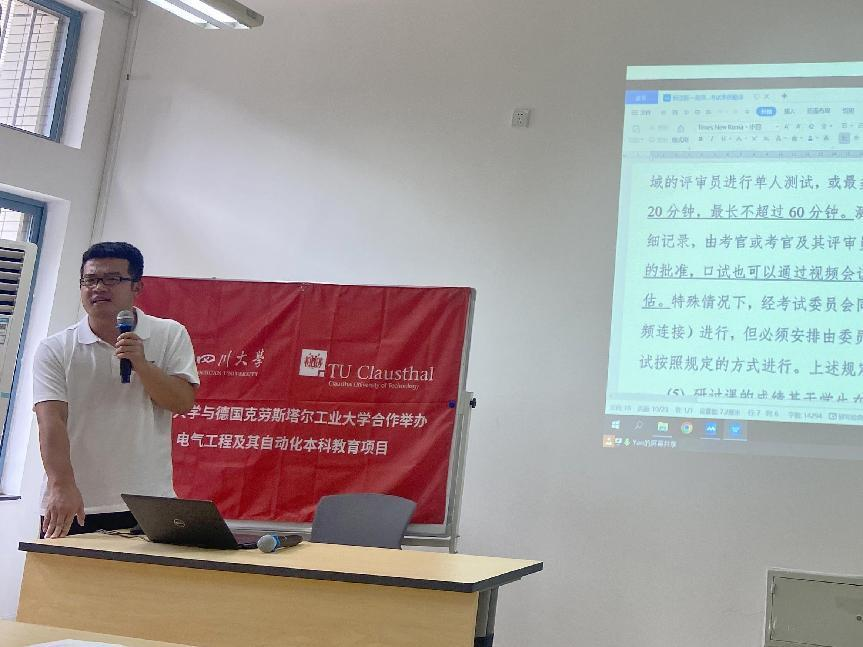 我院电气中德项目首届中德班学生将于今年暑期赴德国克大开始学习。2023年6月2日下午,2021级中德班“赴德学习及升学指导”主题班会在江安校区二基楼B103教室顺利举行。yl23455永利官网院长助理陈实,中德项目行政管理、辅导员老师及2021级中德班全体学生参加了本次班会。班会由中德项目辅导员朱愉田老师主持。