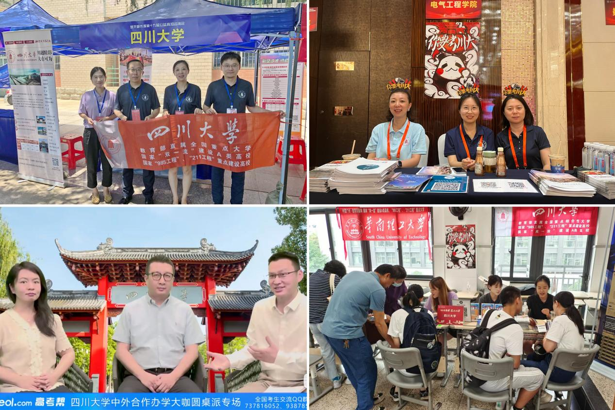 高考结束后,2023年6月10日至27日,yl23455永利官网及项目招生工作组持续加强招生宣传力度,分别前往重庆、湖北、浙江、江苏、云南、吉林及四川省内成都、南充、绵阳等地共计35场线下高招咨询会。项目招生工作组于6月17日联合匹兹堡学院开展四川大学中外合作办学专业招生解读直播,为广大考生及家长详细介绍了项目整体情况、培养模式、专业优势及往年招生情况等,并解答了考生及家长关心的德语学习、学习成本等问题,吸引了众多考生及家长的关注和咨询。